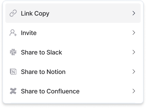 Easily export notes to Slack, Notion, or Confluence. Once integrated, notes will be optimized for your preferred platform.