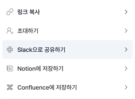 Slack, Notion, Confluence에 노트를 공유해보세요. 한 번만 연동하면 자주 쓰는 플랫폼에 최적화된 형식으로 내보낼 수 있습니다.