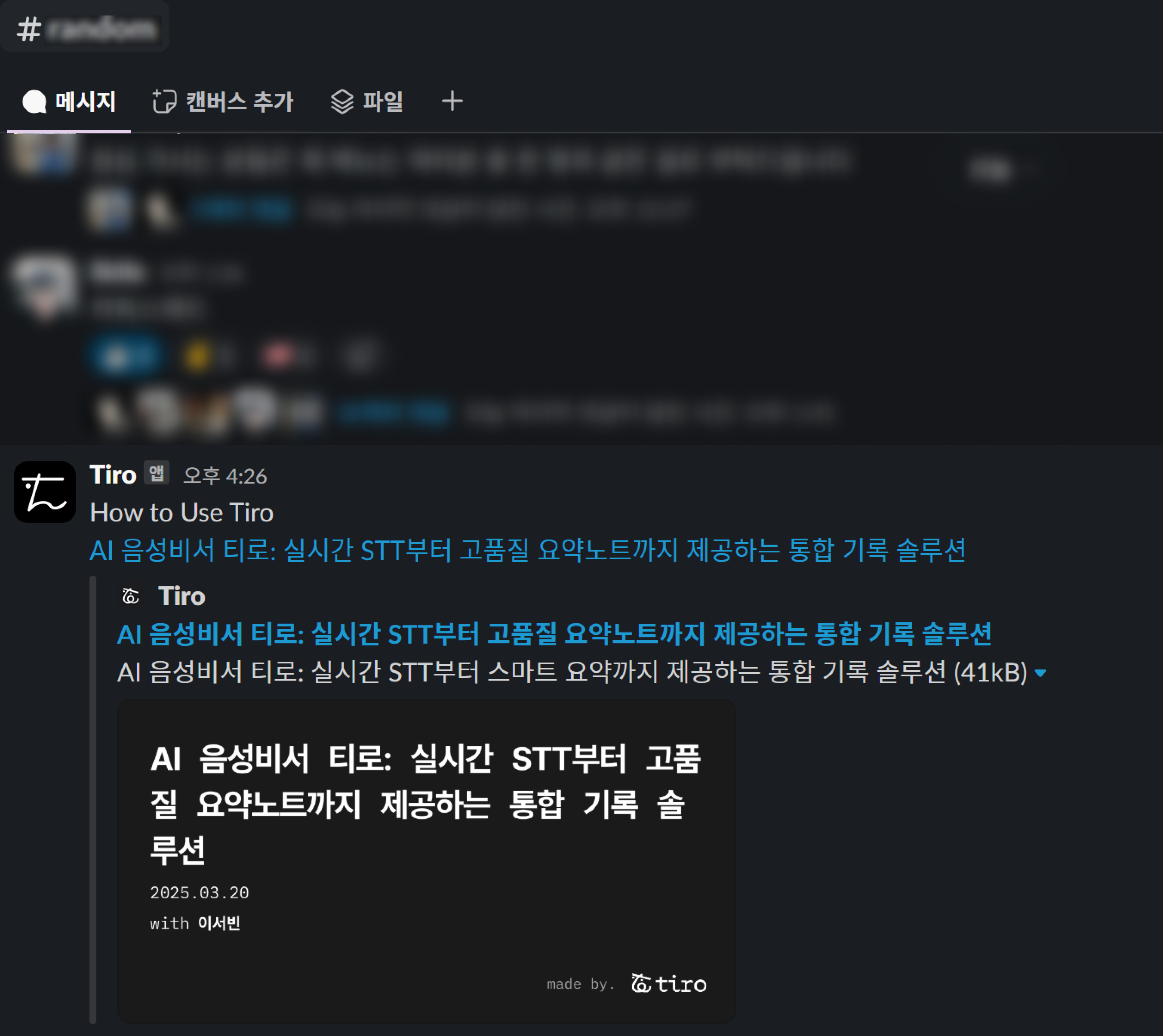 Slack으로 공유된 노트는 이렇게 생겼어요.