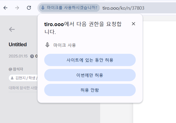 티로에서 새 노트를 생성하면 Chrome이 마이크 권한을 다시 요청합니다