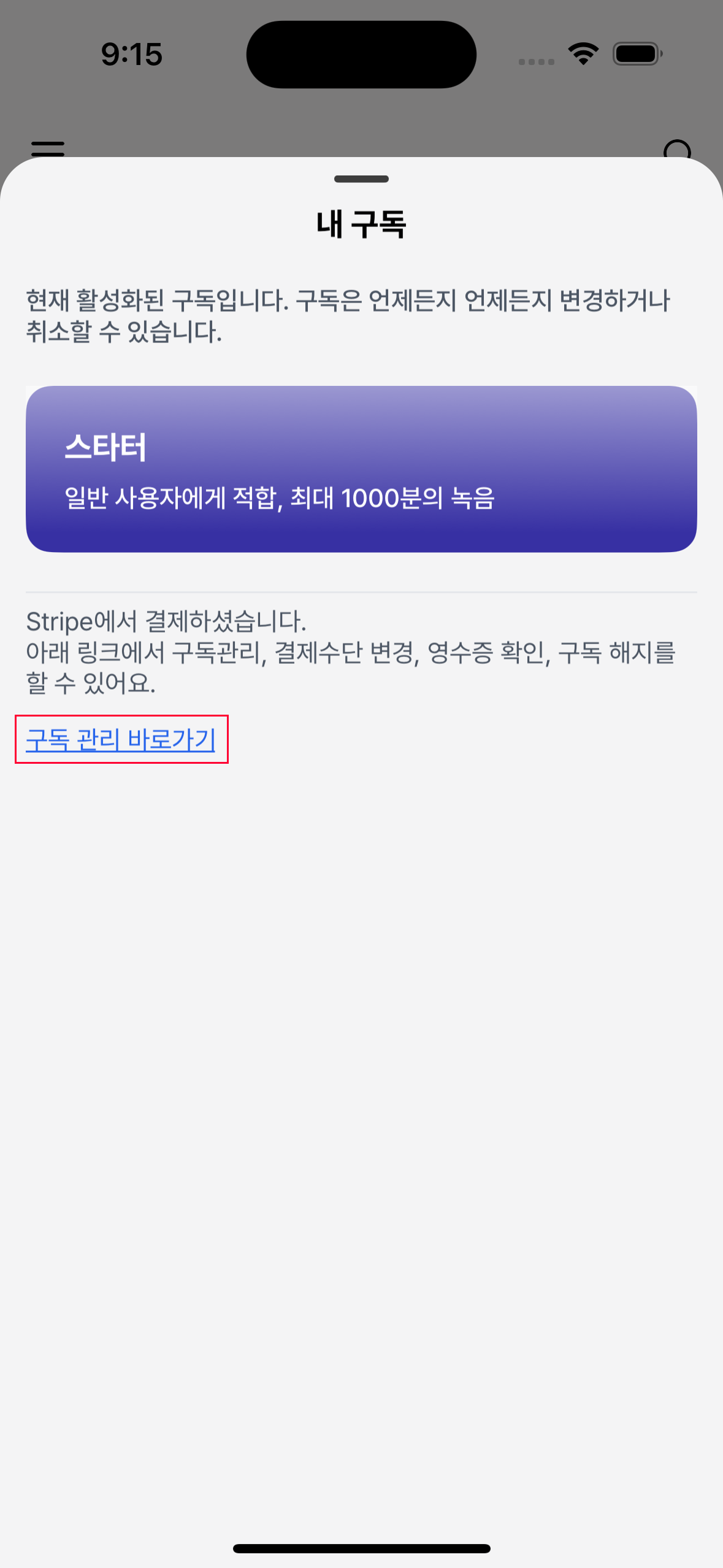 Stripe 구독 관리 포털로 이동