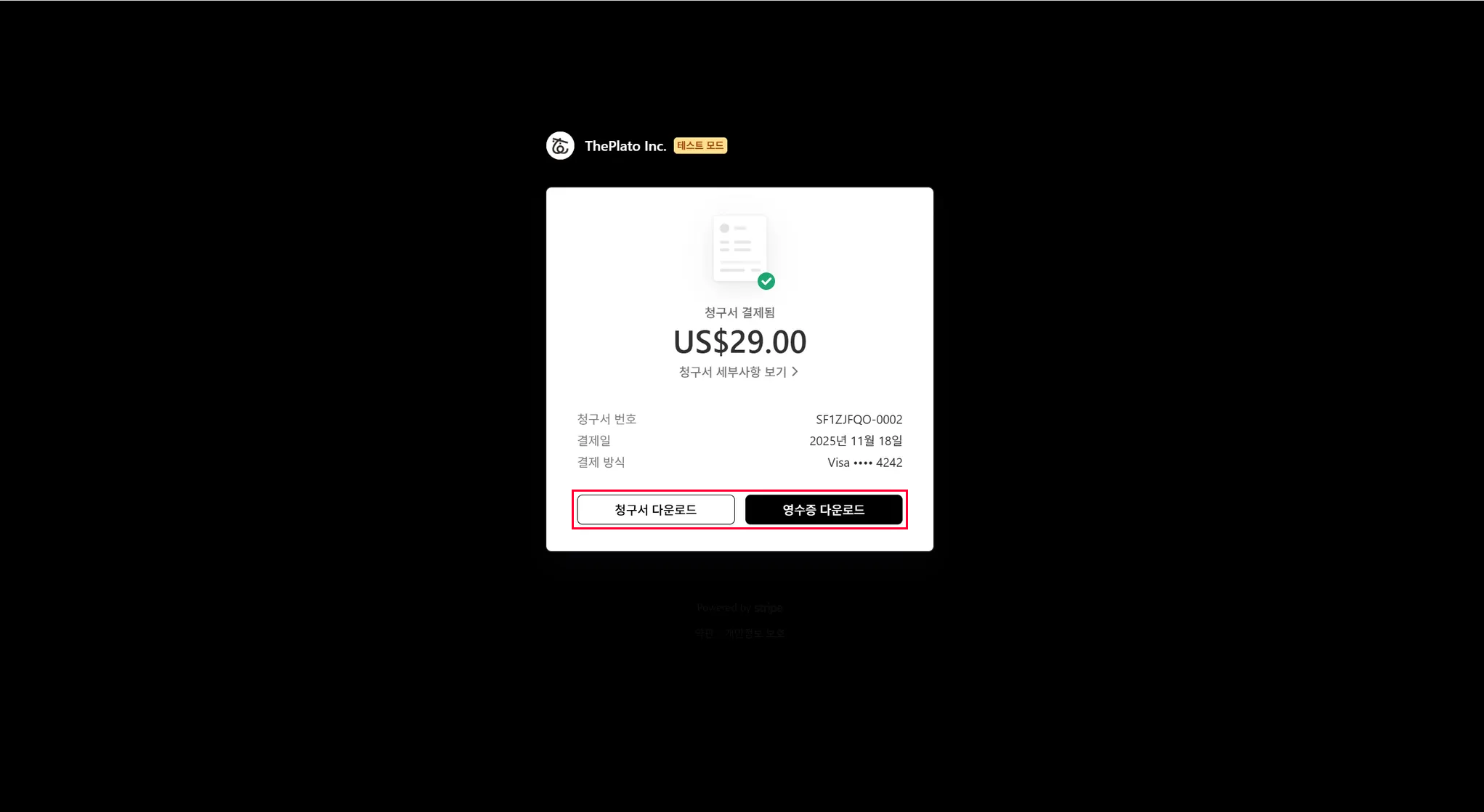 영수증 또는 청구서 다운로드