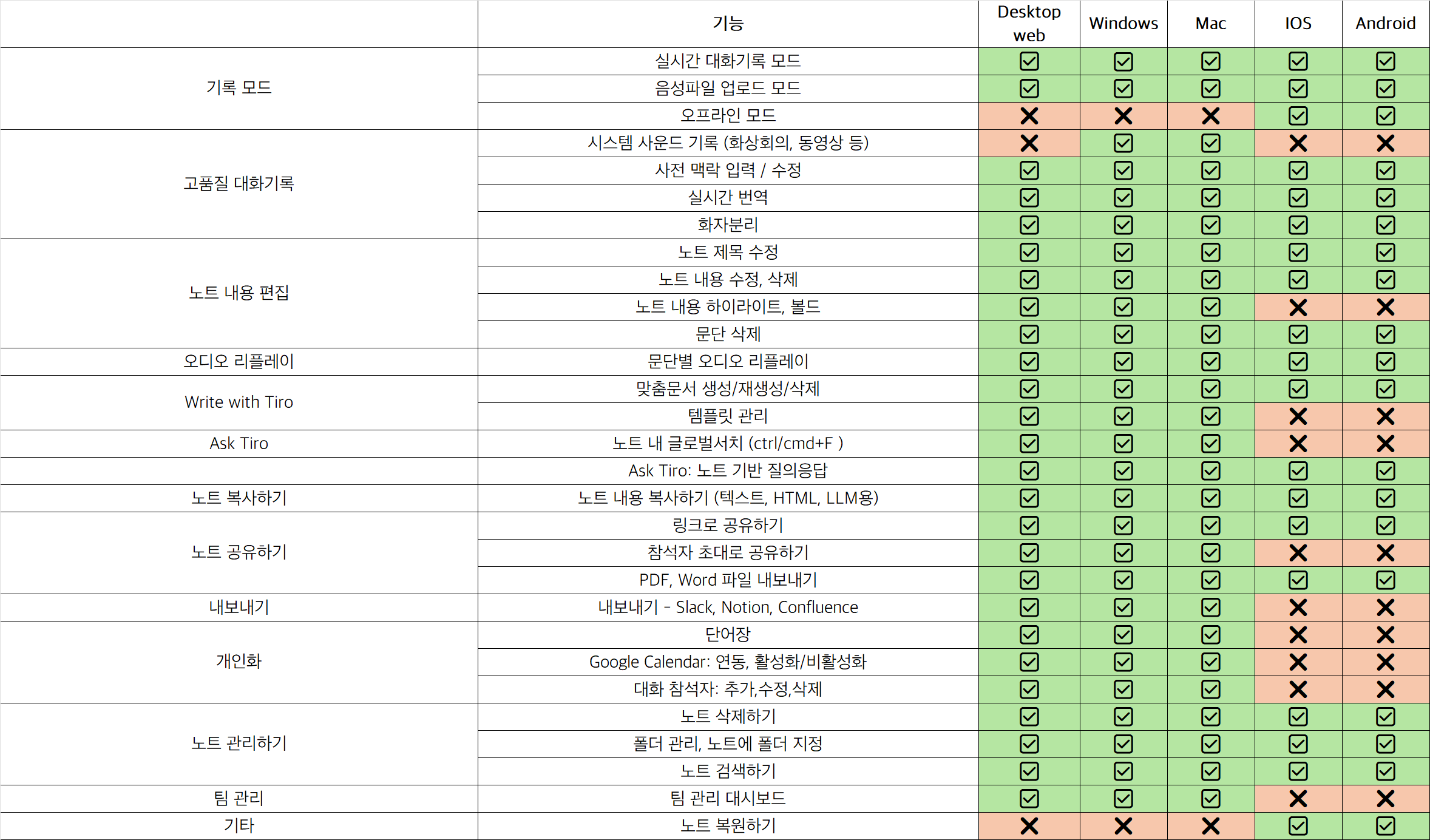 모든 기기, 플랫폼에서 티로를 만나보실 수 있습니다. 각 플랫폼(Windows, Mac, Android, iOS, Web)에서 지원하는 기능을 한눈에 확인하세요.